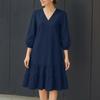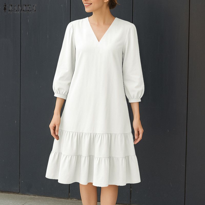 ZANZEA Women Casual V-Neck Solid Color 3/4 Sleeve Loose Dress