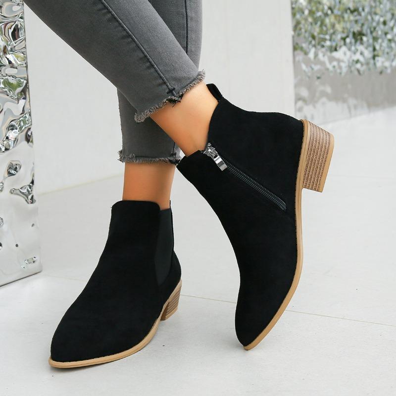 Winter New Large Size Women's Boots Round Head Fashion Retro Side Zipper Bare Boots Round Head Thick Heel Short Boots Tide