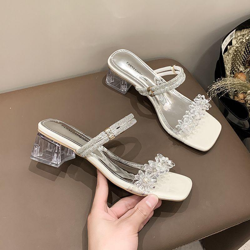 French Stunning High-heeled Sandals Girl 2025 New Summer Wear Fashion Fairy Temperament with Skirt Two Wear Slippers