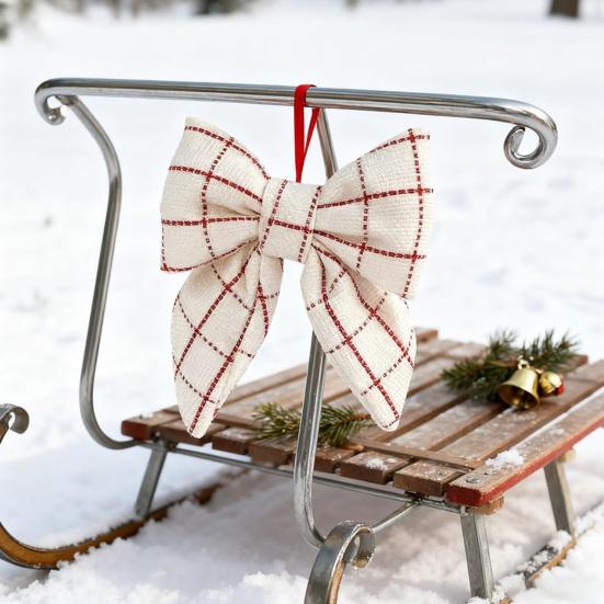 PLAID CHARM: Embrace the timeless allure of the holidays with this decorative bow featuring a classic red and white plaid design. Its festive colors exude warmth and cheer, elevating the visual appeal of wreaths, trees, and garlands to create an inviting Christmas atmosphere indoors and outdoors.