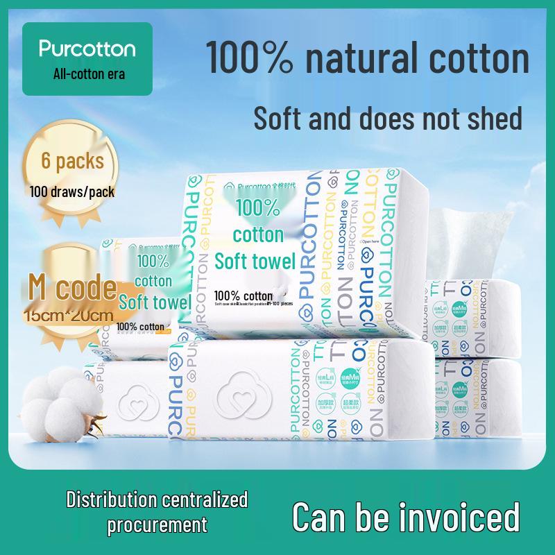 Purcotton Soft Dual-Use Disposable Face Towels, M Size (6 Packs) - Pure Cotton Wipes for Dry & Wet Cleaning and Makeup Removal.