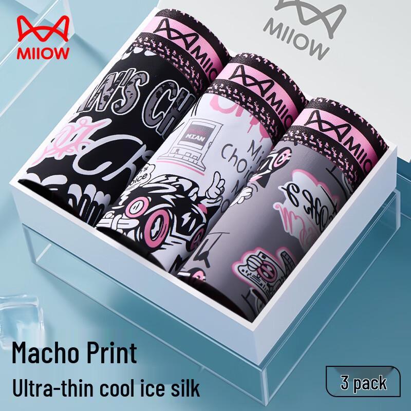 MaoRen Men's Cool Black Ice Silk Printed Boxer Briefs