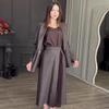 Elegant Women's Solid Color Two-Piece Suit & Long Dress - 2024 Autumn Collection