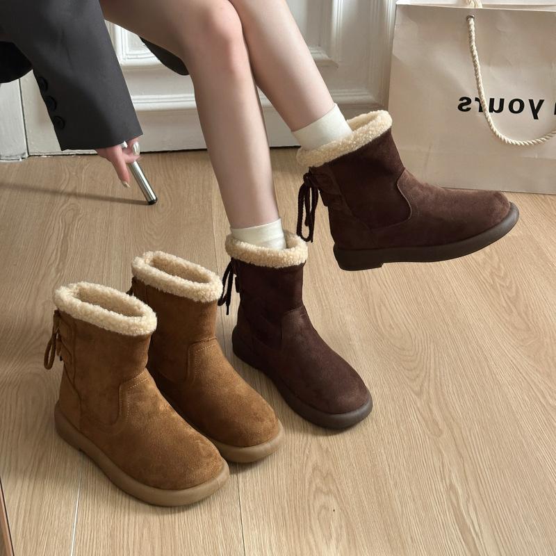 Retro Imitation Leather Lamb Wool Snow Boots Women's 2025 Winter New Piled Thickened Non-slip Wool Cotton Short Boots Snow Boots