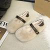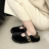 Xiaoxiangfeng Fluffy Shoes Women's Flat-bottomed Cotton Slippers Autumn and Winter Outer Wear Design Sense Soft-soled Mary Jane Velvet Single Shoes