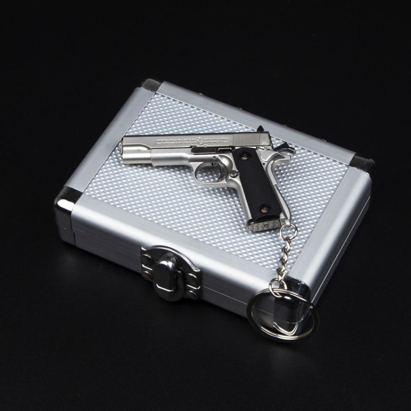 1:3 Metal Gold M1911 Colt Toy Gun Model Mini Keychain Look Real Collection Pubg Prop Birthday Hanging Christmas Gift with Case