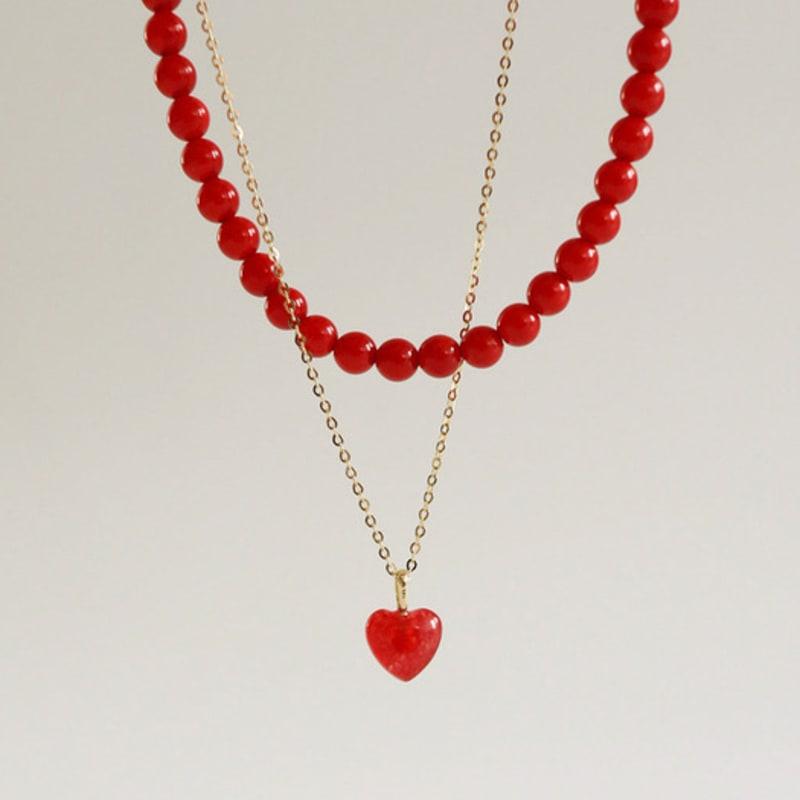 SizeCoral Red Quartz Crystal Heart Necklace 2P Set