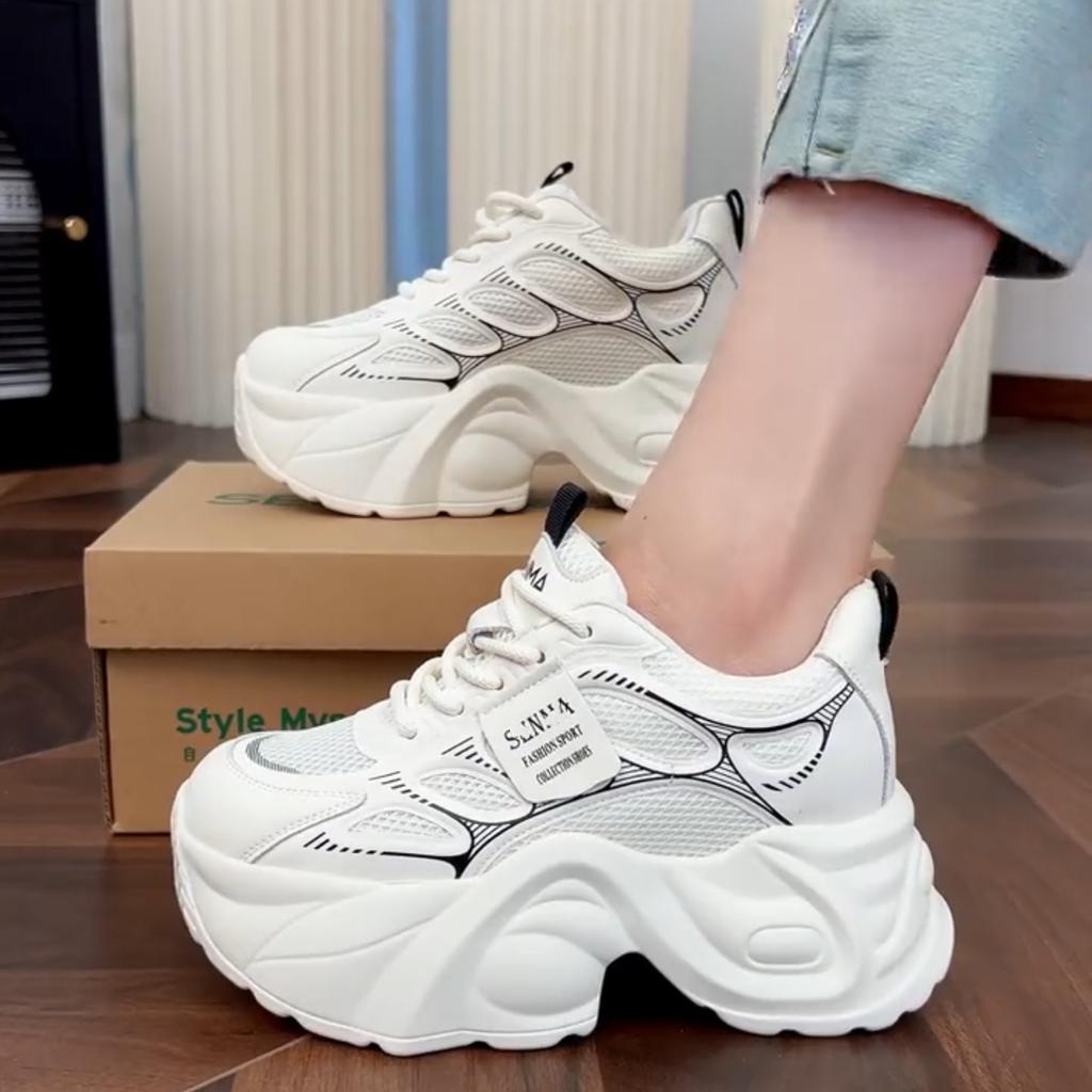 Ins Korean Version of Dad Shoes Women's 2025 Spring and Autumn Low-top Muffin Casual Sports Shoes Lace-up Platform White Shoes