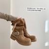 Cowhide Version Grape Mother Same Retro Metal Buckle Western Cowboy Boots Round Head Black Locomotive Boots Women's Pile Short Boots