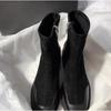 Luxury Faux Suede Leather Patch Stretch Boots Women Side Zipper Design Chunky Heel Ankle Boots Autumn Warm Burgundy Botas Mujer