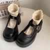 Fashion Black Chunky Heel Platform Small Leather Shoes Women's 2025 Spring New Arrival French Height Increasing Mary Jane Shoes Short