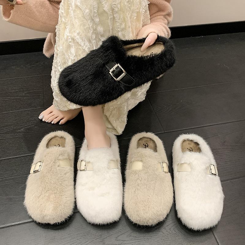 Premium Mink Hair Thick-soled Fluffy Slippers for Women To Wear 2025 Autumn and Winter New Fluffy Shoes Bag Head Cotton Slippers