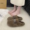 Thick-soled Heightening Fluffy Slippers for Women To Wear 2025 Autumn and Winter New Lazy One-pedal Plush Cotton Slippers for Women
