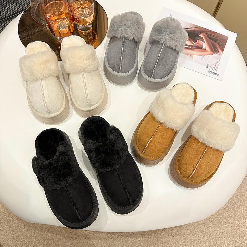 Snow Boots Women's Fashion Fluffy Slippers 2025 Autumn and Winter New Korean Version Comfortable and Warm Thick-bottomed Lazy Bag Head Slippers