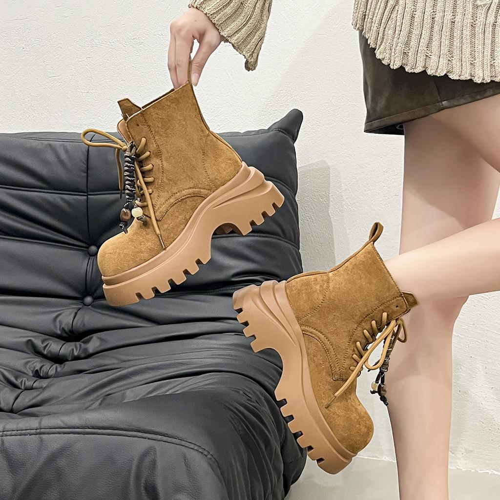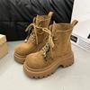 Thick-soled Heightened Big-headed Ugly Cute Martin Boots Women's 2025 New Autumn and Winter Fringed Locomotive Boots Short Boots Rhubarb Boots