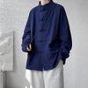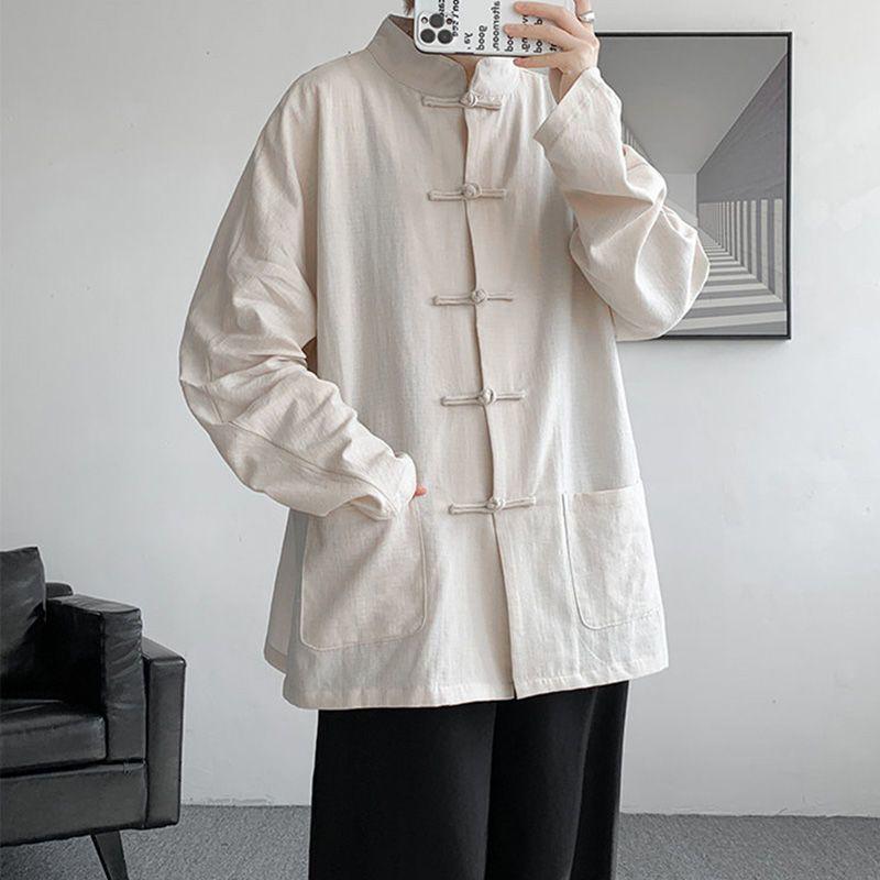 Experience comfort and style with this men's shirt, crafted from a breathable cotton blend. Featuring a mandarin collar and traditional frog buttons, it offers a unique twist on classic design. The shirt has a solid pattern and long sleeves, making it a versatile addition to any wardrobe.