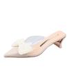 Baotou Half Slippers Women's 2025 New Women's Shoes Summer Bow Pointed Fairy Wind Thick Heel Pointed Cold Slippers