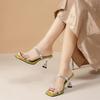 Open Toe Square Toe Flip-Flops Women Summer New Rhinestone Slender Strap Cover Foot Wear Non-slip Stiletto Heels