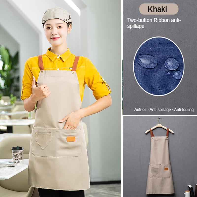 Customized Embroidery Brand Logo Waterproof Signature Kitchen Aprons Home Chef Baking Clothes With Pockets Adult Bib Waist Bag