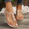 Fashion Beads Sandals Clip Round Toe Flat With Solid Color Genuine Leather Summer Fashion Elegant Sexy Concise Party Women Shoes Newest