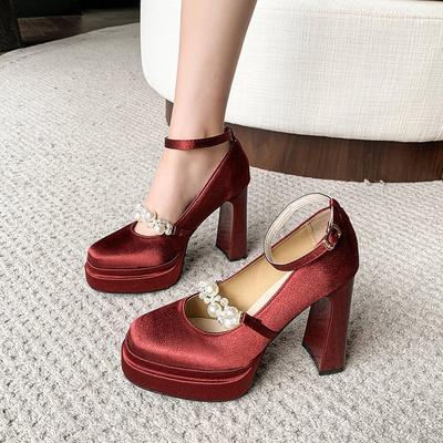 New Pearl High Heels Platform Mary Jane Wedding Shoes Bridal Shoes Can Wear White Single Shoes Women's Thick Heels