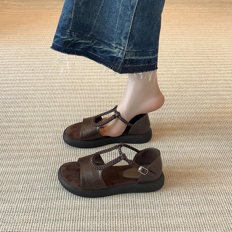 Spot~ Niche Literary and Retro College Style Sandals Women's 2025 New Retro Versatile Casual Platform Beach Shoes