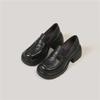 Platform Muffin One-pedal Loafers Women's Retro British Black Versatile Small Leather Shoes Single Shoes Thick Heel Loafers