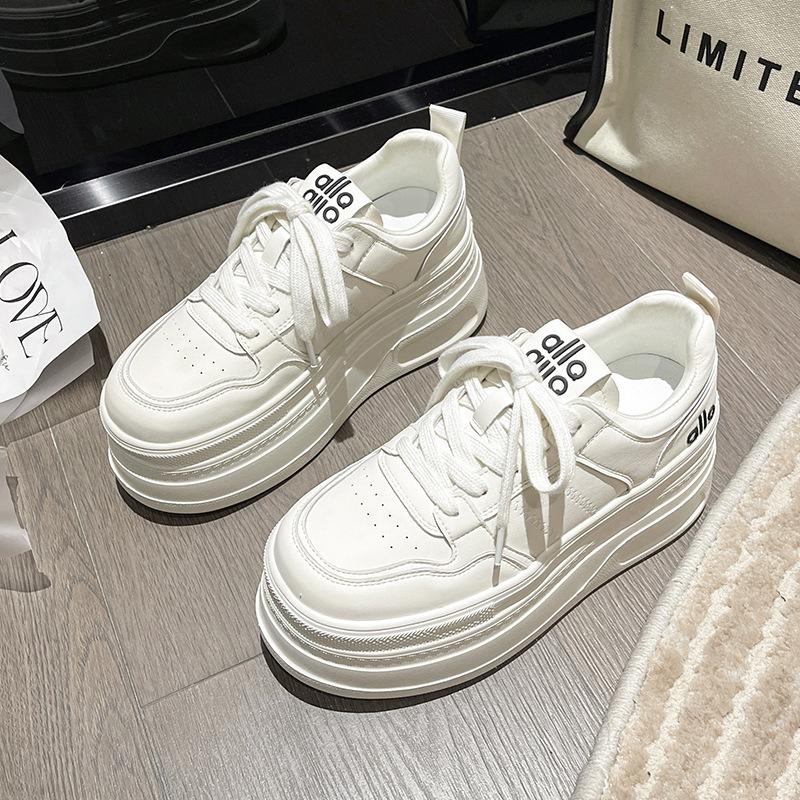 Little White Shoes Women's 2025 Spring and Summer New Popular Versatile This Year's Popular Thick-soled Mesh Casual Inner Height-increasing Board Sho