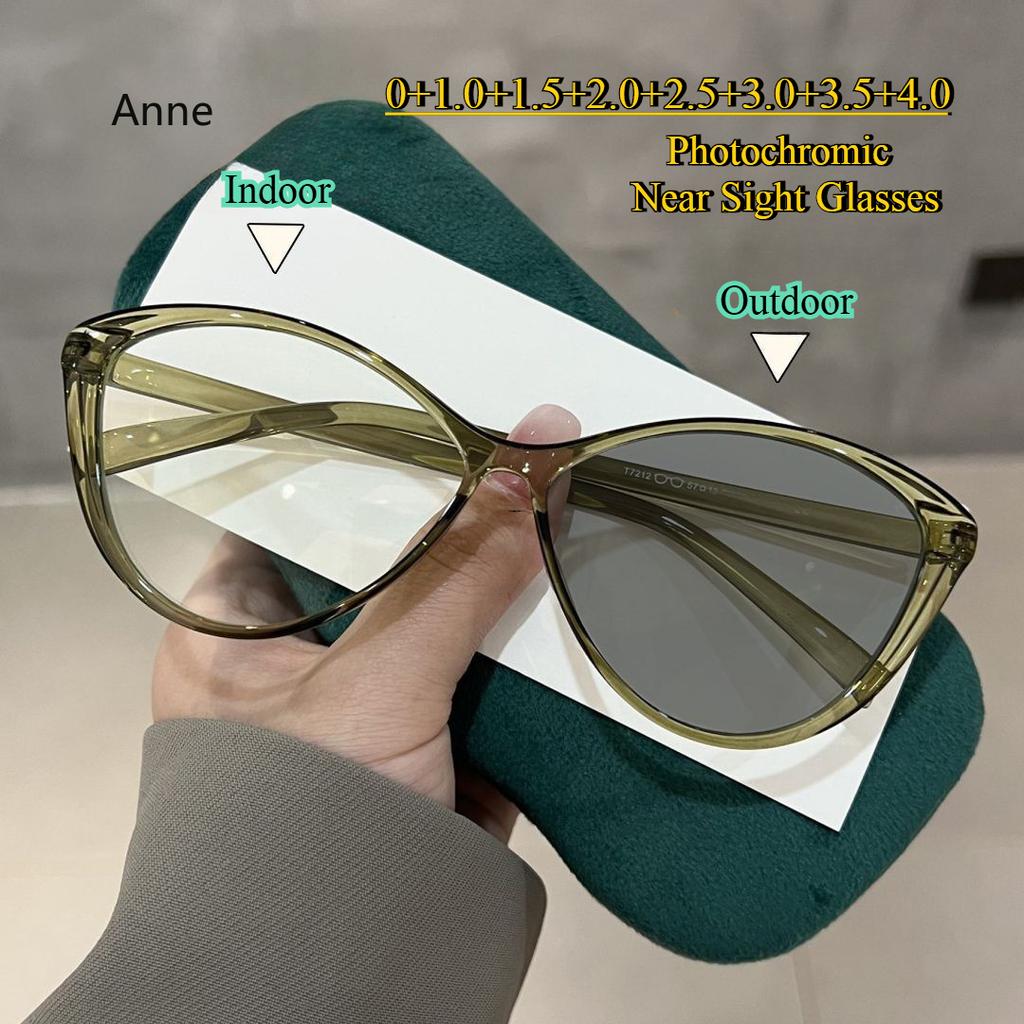 Trendy Photochromic Near Sight Glasses for Women Unisex Color Changing Sun Glasses Fashion Cat Eye Myopia Eyeglasses 0 To -4.0