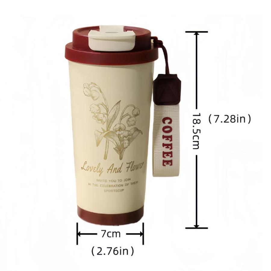 Stainless Steel Thermos 500ml Double-Wall Vacuum Stainless Steel Tumbler Floral Art Print Coffee Mug Leakproof Travel Cup