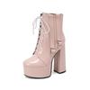 Short Boots Patent Leather Round Head Thick Sole Thick Heel Super High Heel Front Lace-up Martin Boots Belt Buckle Ankle Short Boots