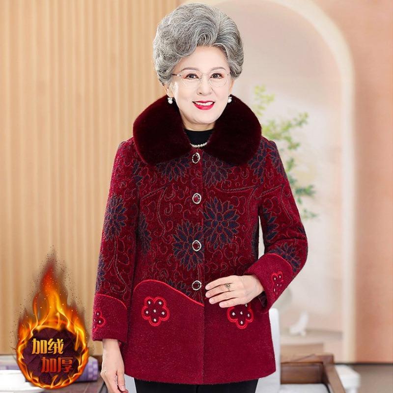 Autumn and Winter Old Lady Clothes Mink Fleece Coat Winter Clothes Fleece Thickened Coat Women