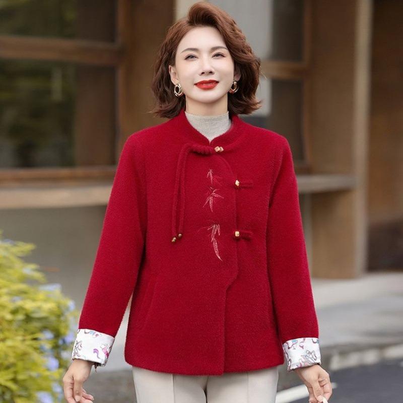 Happy Mother-in-law Wedding Dress Chinese Women's Clothing Spring and Autumn Temperament Woolen Middle-aged Noble Top Jacket Women's Clothing