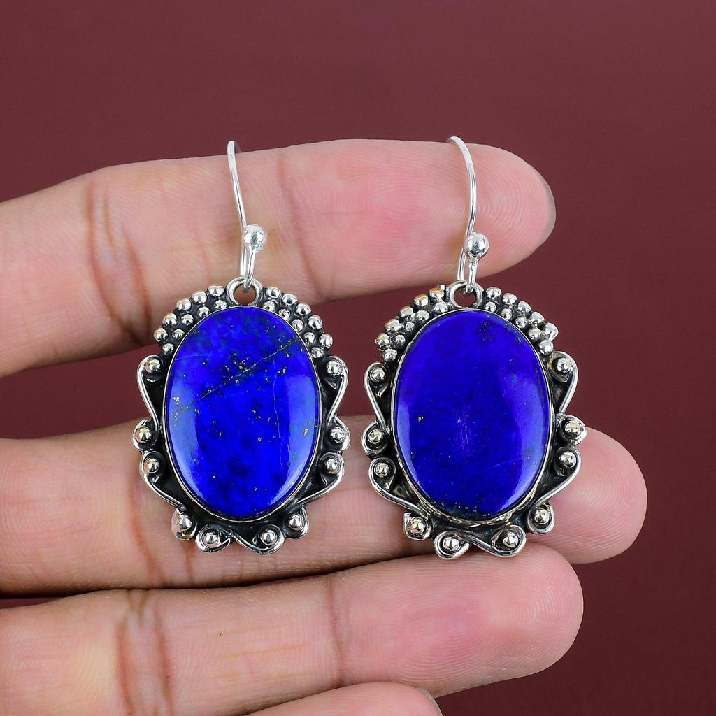 Lapis Lazuli Gemstone Earring 925 Sterling Silver Earring Handmade Earring Very Pretty Lapis Lazuli Jewelry Gifts For Mom Birthstone Earring