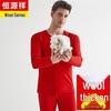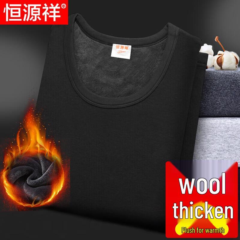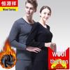 Hengyuanxiang Unisex Thermal Underwear Set with Wool Blend Fleece Lining