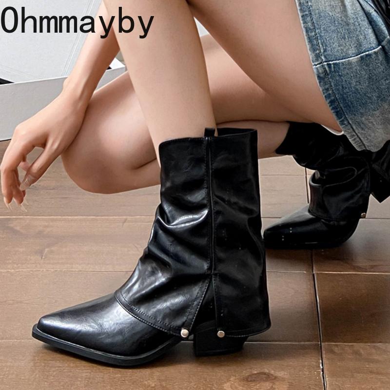 Fashion Vintage Women Western Cowboy Boots Fashion Pointed Toe Shoes Ladies Thick Heel Short Botas Autumn Winter Zapatos De Mujer