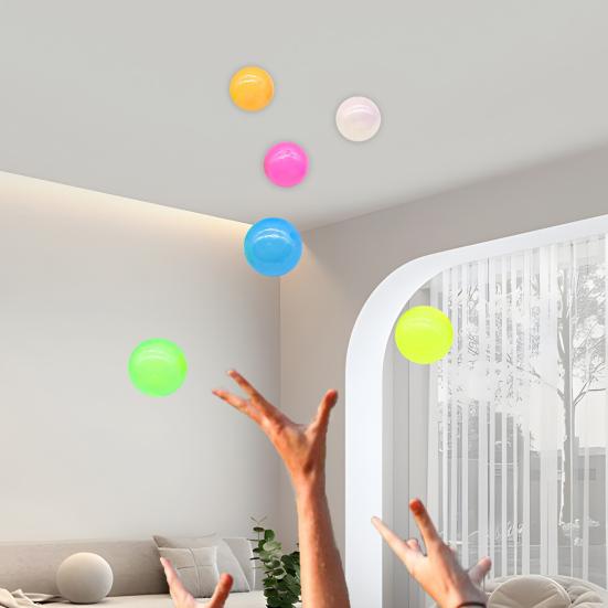 Introducing the glowing sticky ball, a versatile and fun stress-relief toy that is super sticky and easy to clean. Made of high-quality rubber material, this sticky ball is durable and safe to use. Simply throw it on flat surfaces like walls, ceilings, or tabletops, and watch it slowly fall down, helping you relax and unwind.