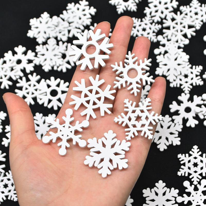 50pcs Mix Shape White Wooden Snowflakes Christmas Ornaments Xmas Tree Wood Pendant New Year Christmas Decorations for Home 2023