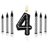 7Pcs Racing Cars Themed Birthday Candles Black White Checkered Number Cake Topper Kids Boys Birthday Party Decoration Supplies