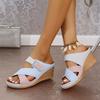 Foreign Trade Velcro Color Matching Thick-bottomed Wedge Slippers Women's 2025 New Cross-word Fish Mouth Large-size Slippers