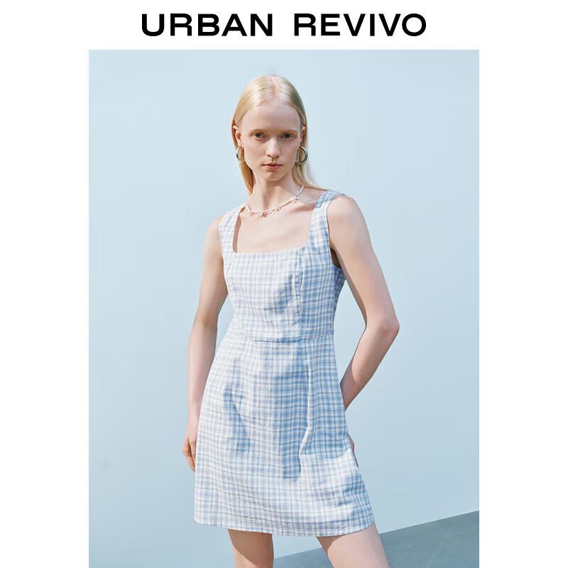 UR 2025 Summer Contrast Plaid Sleeveless A-line Dress