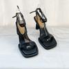 2025 Spring and Summer Fairy Wind Square Head Word with Sandals Female Internet Celebrity Strap Stiletto Cross Strap Celebrity High Heels