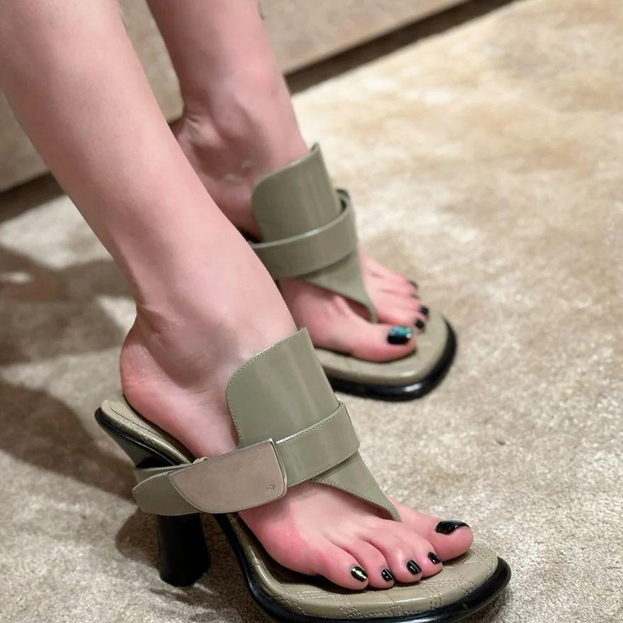 Fashion Generous Head High Heels Women's 2025 New Thick Heel Flip-flops Thick Heel Black Tea Green Rear Strap Slippers