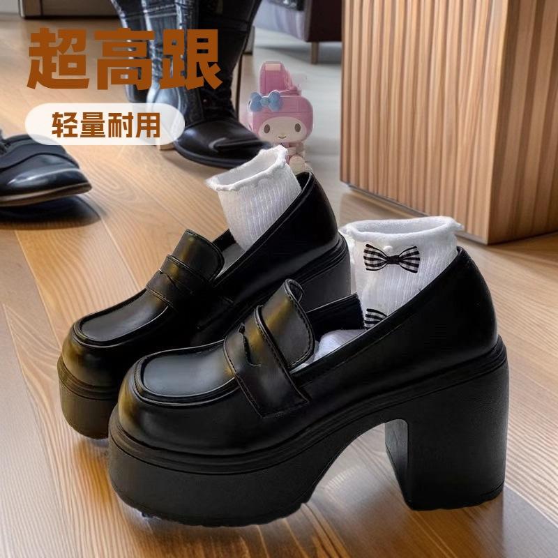 Small Leather Shoes Women's Super High Heel 2025 Spring New Heightening British Style Single Shoes Platform Thick Heel Loafers Women