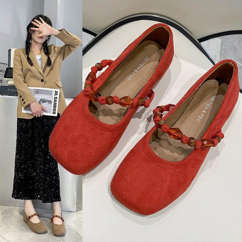 Skirt Mary Jane Shoes with 2025 Shallow Single Shoes Women's New Beaded Gentle National Style Flat Autumn Beanie Shoes No