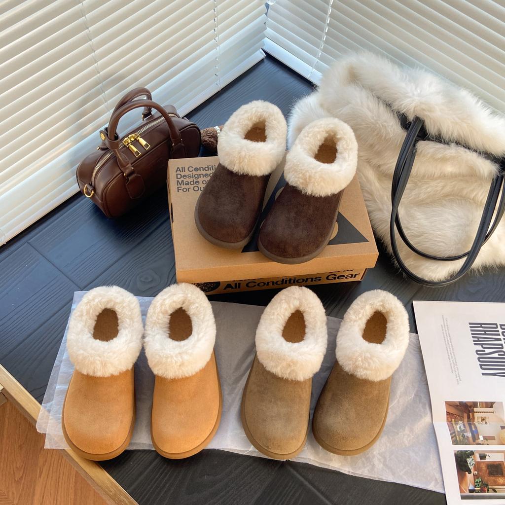 Mao Mao Mouth Snow Boots Women's 2025 Winter New Korean Version Platform Short Tube One Pedal Lazy Foreign Trade Large Size Cotton Shoes