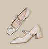 2025hot Sale New Spring Crystal Buckle Women Mary Jane Shoes Fashion Butterfly-knot Female Elegant Square Toe Thick Heel Shoes