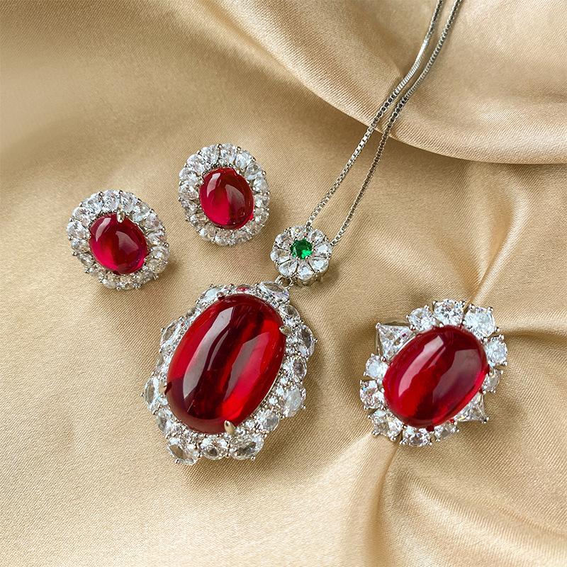 Jewelry Copper Bottom Gold-Plated Ice Seed Fluorescent Denier-Shaped Red Corundum Luxury Set Stone 18 * 25-13 * 18