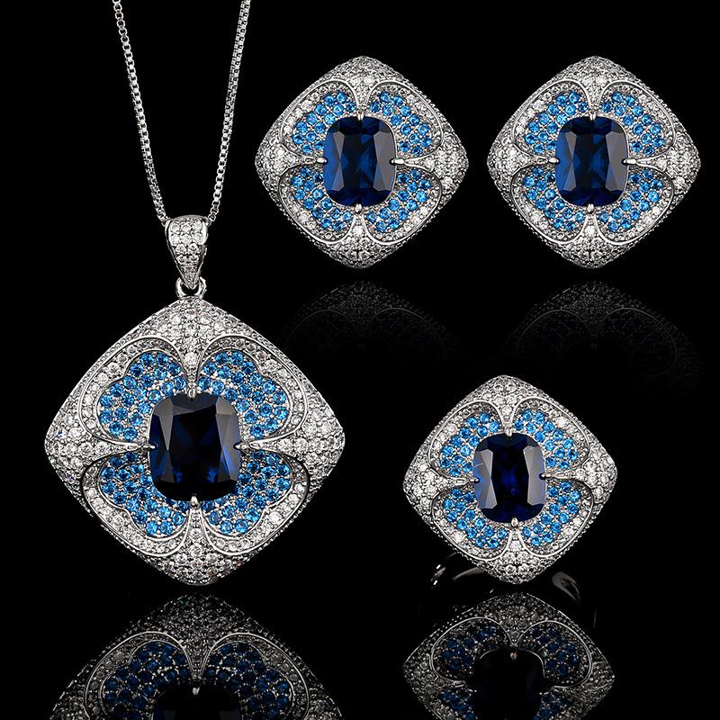 Jewelry Set, Earrings, Ring Necklace, Blue Spinel Square Design, High-End Light Luxury Women'S Colored Treasure.