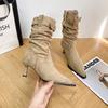 Retro Suede Pointed High-heeled Pleated Piled Boots Women's 2025 Autumn and Winter New Belt Buckle Medium Tube Temperament Martin Boots